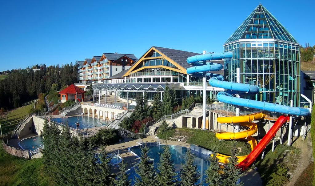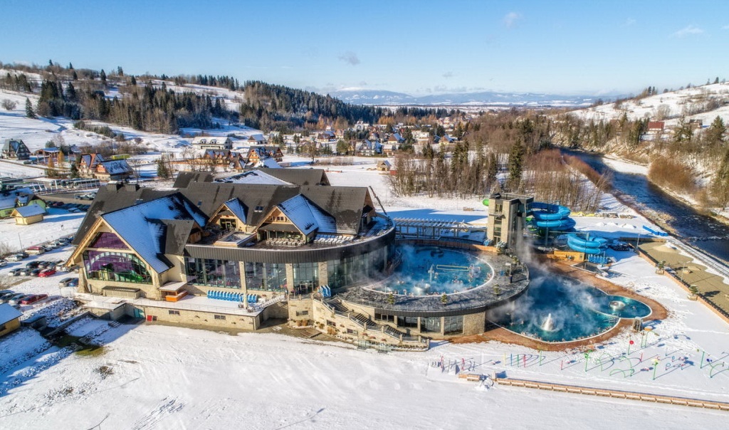 A Zakopaneben található aquaparknál nagyobb és színvonalasabb létesítmény, 5 beltéri és 4 kültéri termál medencével, 30-38 fokos vízhőmérséklettel. Nyitva minden nap 9-22 óra között. Családi jegyek 289 PLN-ért kaphatóak és 4 óra hosszra szólnak. A fűrdő Zakopánétól 18 km-re található.
